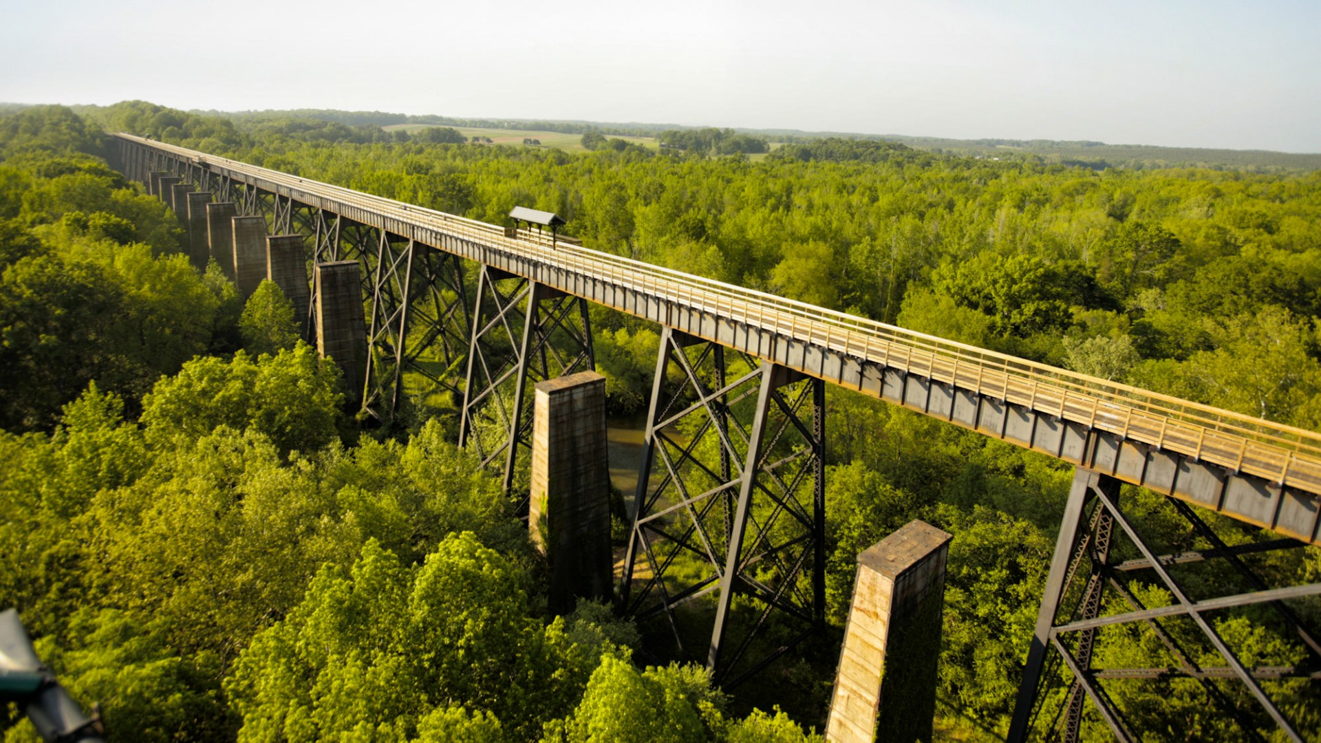 High Bridge Trail is 32.2 miles long and ideally suited for hiking, bicycling and horseback riding. Once a rail bed, the trail is wide, level and generally flat. Its finely crushed limestone surface and dimensions make it easy to enjoy.