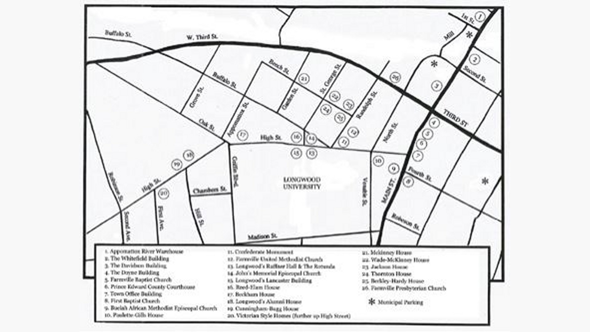The Historic Downtown Farmville Walking Tour is a self-guided walking tour of the Farmville Historic District. Spend a leisurely afternoon experiencing Farmville's history and unique architecture.
