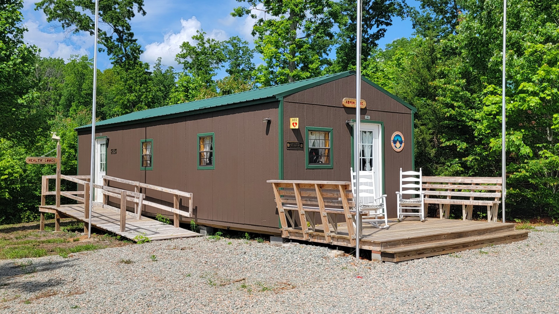 The Health Lodge & Admin Building was constructed in November 2020. It is fully heated and air-conditioned with first-aid equipment and an AED for emergencies. The Health Lodge features two bunks for campers who are feeling ill, an ADA-compliant wheelchair access ramp and will soon have a fully functioning restroom with a shower. The Admin Office handles all the Camp Parsons business and gives you a place to checkout board games and purchase basic snacks, souvenirs and Camp Parsons merchandise.