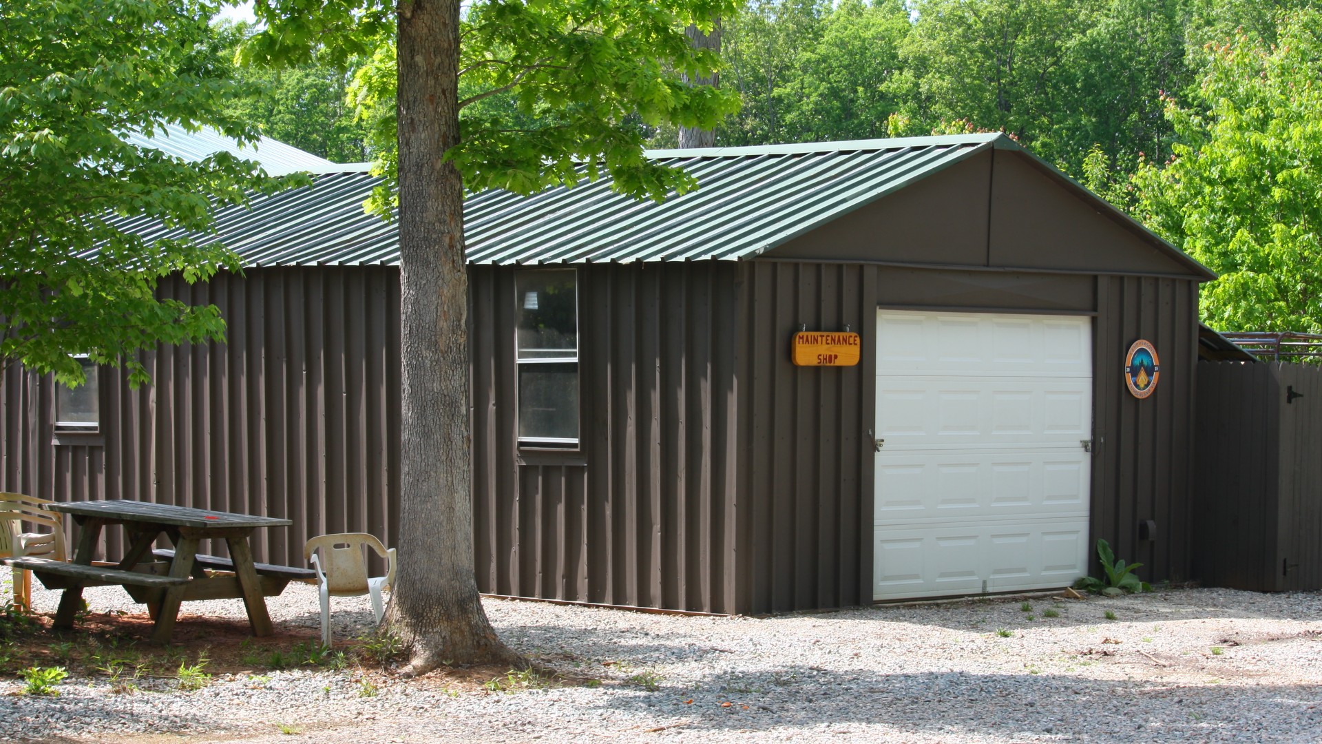 Our Maintenance Shop is now on it's third life. Originally owned by the Midlothian Ruritan, it was donated to another camp after the Ruritan sold the property it was sitting on. After that camp closed down, it was dismantled piece by piece and reconstructed in March 2020 yet again at Camp Parsons. We always recycle, reuse and repurpose when we can. The maintenance shop rests on a concrete slab, has electricity and lights and houses all of our tools and woodworking equipment. If you cannot find Mr. Parsons around camp, you can usually find him in here working on a project for the camp.
